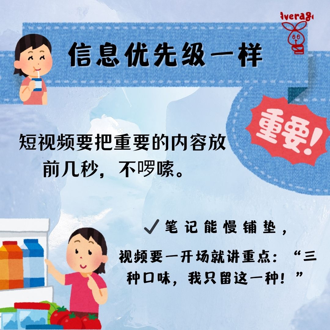 短视频要把重要的内容放前几秒,不啰嗦。